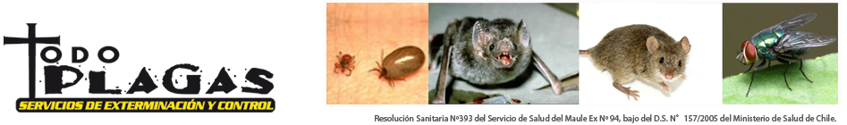 TODOPLAGAS es una empresa ubicada en la Región del Maule, específicamente en la cuidad de Curicó, autorizada para realizar servicios de control y exterminación de plagas bajo Resolución Sanitaria Nº393 del Servicio de Salud del Maule Ex Nº 94, bajo del D.S. N°157/2005 del Ministerio de Salud de Chile.
